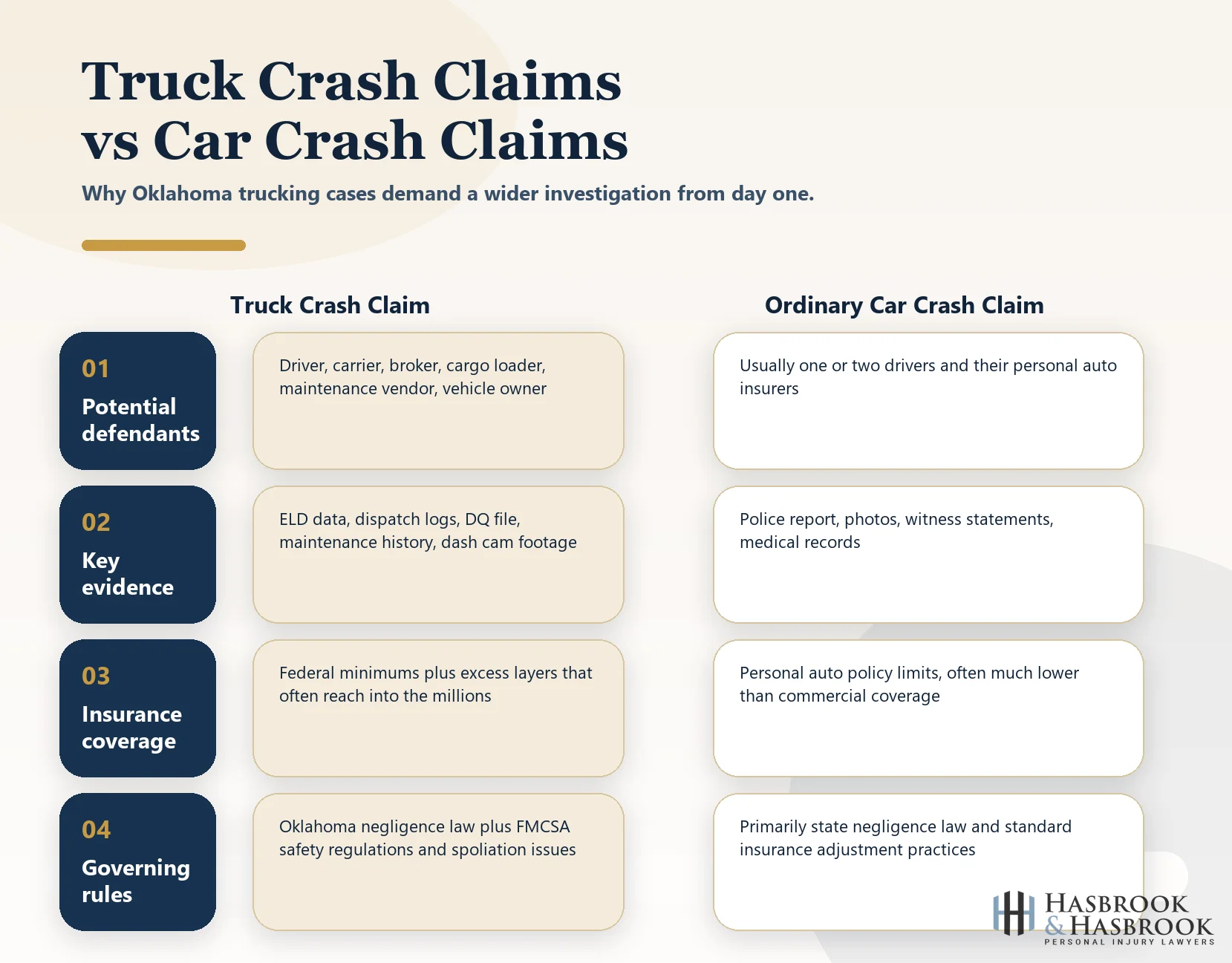 Preserving HOS and ELD records is one of the most time-sensitive steps in a truck accident case. Call 405-605-2426 to reach Hasbrook & Hasbrook for a free consultation, or contact us through the form on this page.